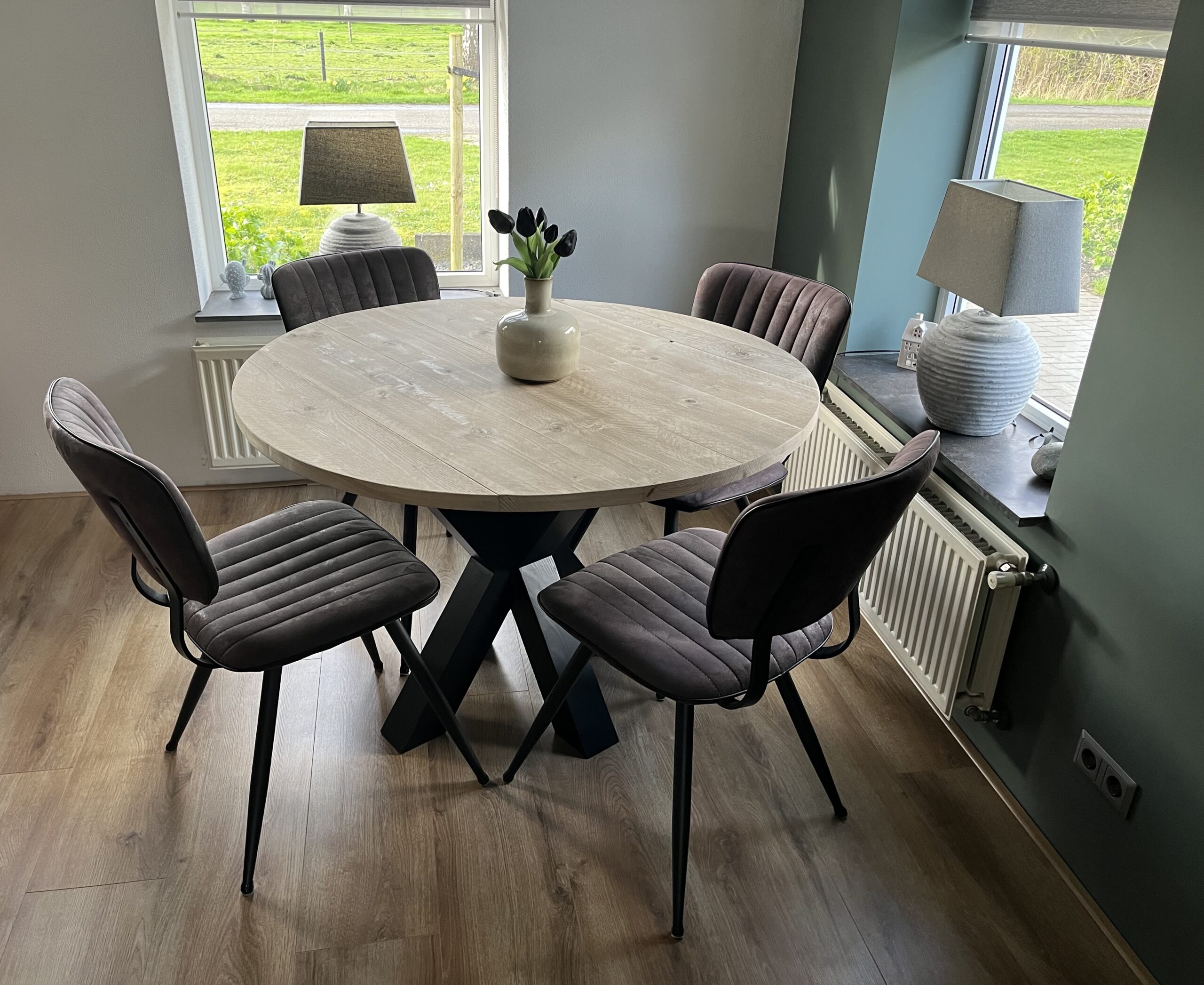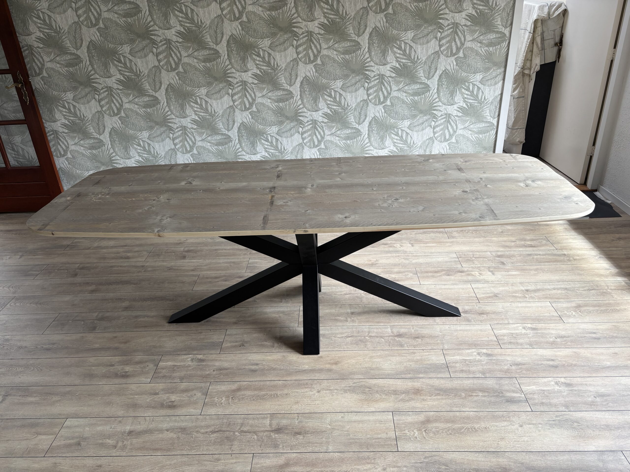 Steigerhouten Eettafel “Overijssel” industrieel. buiten editie.