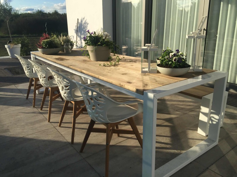 Steigerhouten Eettafel “Friesland”, industrieel. buiten editie